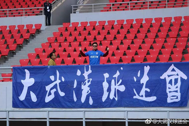 4月3日,中乙第3輪武漢三鎮(zhèn)客場(chǎng)挑戰(zhàn)云南昆陸。有位武漢三鎮(zhèn)的球迷遠(yuǎn)征云南曲靖,這位大武漢球迷會(huì)的會(huì)員,在客隊(duì)球迷看臺(tái)一個(gè)人為武漢三鎮(zhèn)吶喊加油。