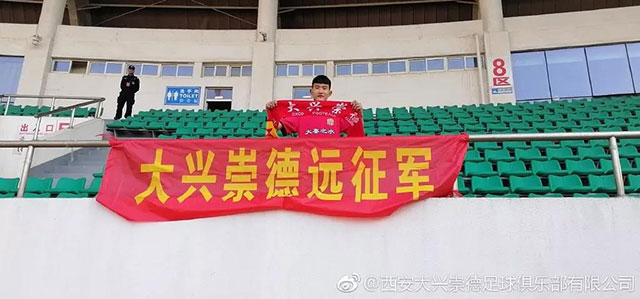 4月13日,中乙第5輪西安大興崇德客場(chǎng)挑戰(zhàn)鹽城大豐。這位在江蘇常州工作的陜西球迷,賽前主動(dòng)聯(lián)系到西安大興崇德球迷會(huì)員俱樂(lè)部,說(shuō)他想前往鹽城為自己家鄉(xiāng)的球隊(duì)助威。最終,他出現(xiàn)在了這場(chǎng)比賽的看臺(tái)上,成為現(xiàn)場(chǎng)唯一的一名為西安大興崇德吶喊助威的球迷。這位球迷表示:“只要是家鄉(xiāng)的球隊(duì),我就都支持,都希望能夠打出好成績(jī)!”