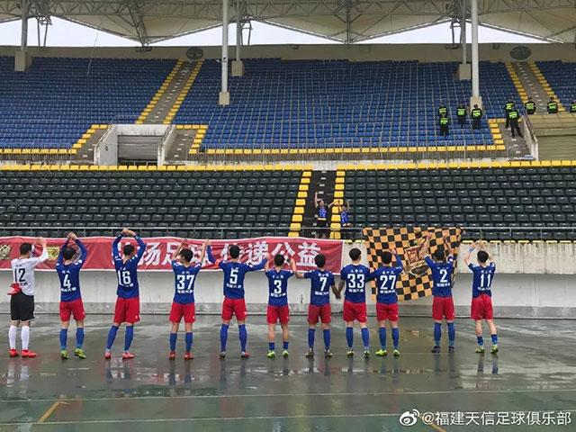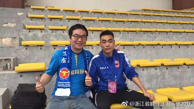 5月15日,中乙第10輪福建天信客場(chǎng)挑戰(zhàn)湖南湘濤。這場(chǎng)比賽在雨中進(jìn)行,有兩位遠(yuǎn)征湖南的福建天信球迷,與球隊(duì)?wèi)?zhàn)斗在了一起,在雨中見證了福建天信在客場(chǎng)的勝利。