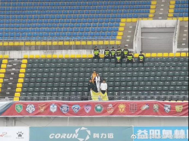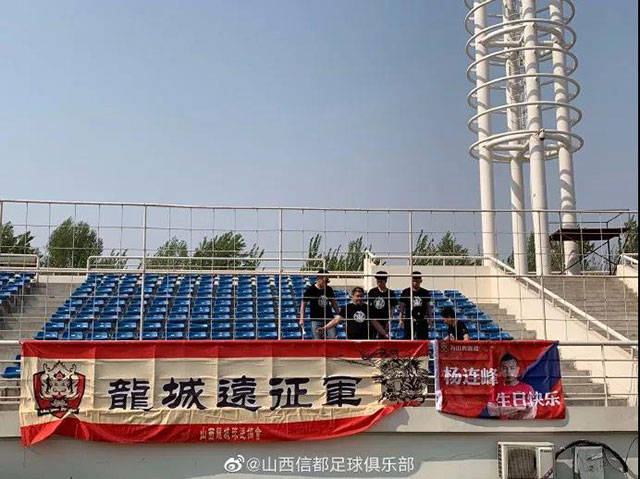 4月20日,中乙第6輪拉薩城投客場(chǎng)挑戰(zhàn)湖南湘濤。遠(yuǎn)赴湖南益陽(yáng)的這四位拉薩城投球迷,出現(xiàn)在了客隊(duì)球迷看臺(tái),為拉薩城投將士助威。