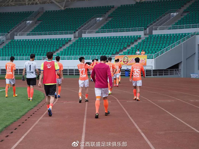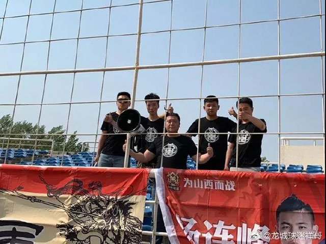 5月11日,中乙第9輪江西聯(lián)盛國(guó)貿(mào)客場(chǎng)挑戰(zhàn)云南昆陸。有兩位江西聯(lián)盛國(guó)貿(mào)的球迷遠(yuǎn)赴云南曲靖,在客隊(duì)球迷看臺(tái)不停地為球隊(duì)加油吶喊。