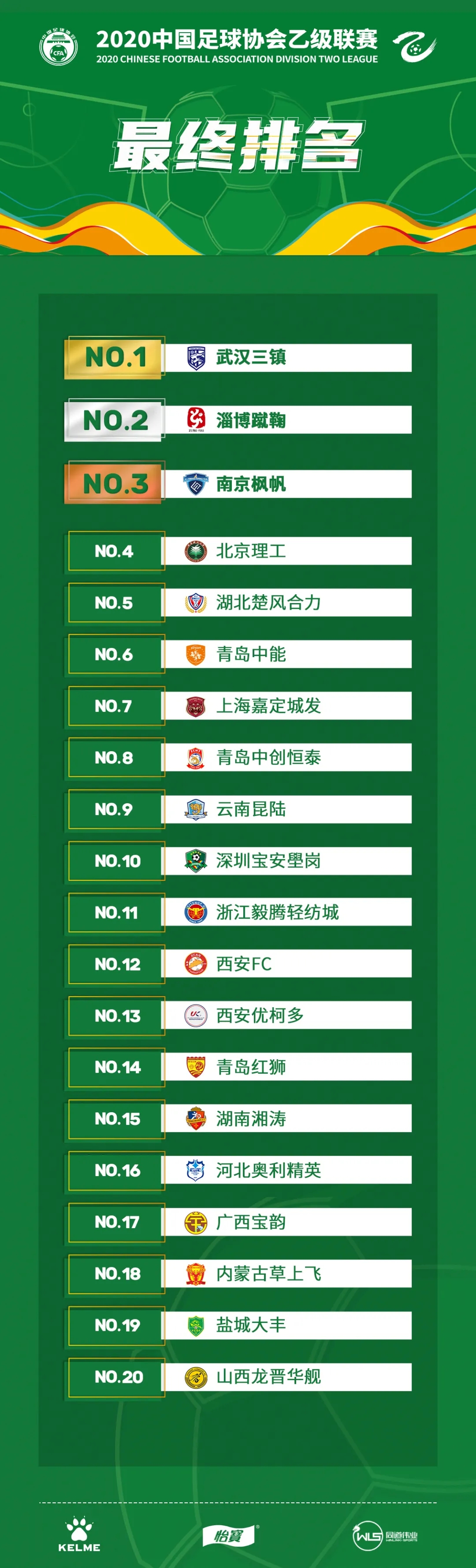 在這樣困難的一年中,中國足球的前行離不開各方、各部門、每一位參與者的付出。2020中乙聯賽的舉辦同樣離不開各方、各部門的大力支持,在此向所有人表示致敬和感謝。前路漫漫亦燦燦。讓我們明年中乙,不見不散!